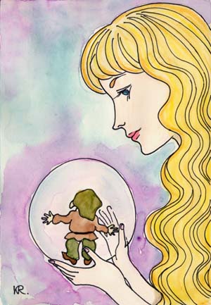 The prince repeated the song and the girl memorized the dwarf's name. The prince couldn't understand at all why the girl had become so cheerful so suddenly, but he was certainly pleased to see the girl's happy face. |