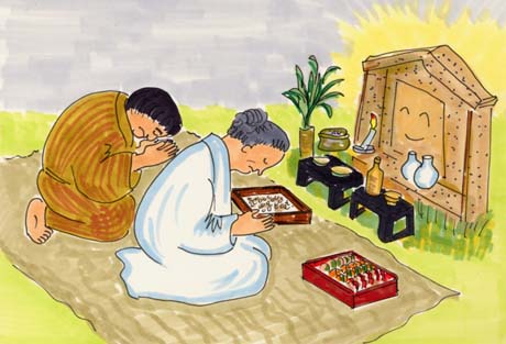 “My dear ancestors, please tell me what you were trying to say in my dream,” said Minoru. Then he heard a voice say, “Listen. One of your relatives damaged the land.She made the land God angry, and her soul has been captured by the God. You must help her quickly.” |